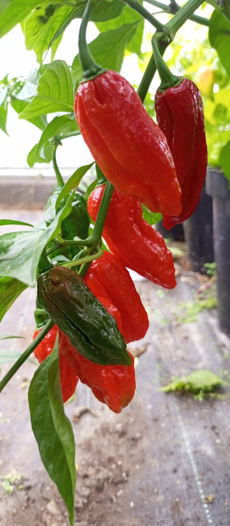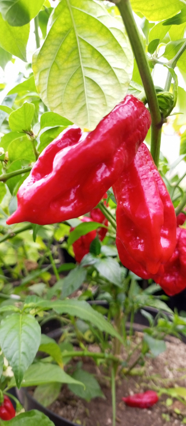 Сверхострый и по-своему красивый сорт острого перца. Острота до 1 000 000 по шкале Сковилла. Куст достигает высоты до 1 м, достаточно раскидистый и потребует подвязки. Срок вегетации среднепоздний. В технической зрелости плоды зелёного цвета, при созревании становятся ярко-красными. Применение универсальное.