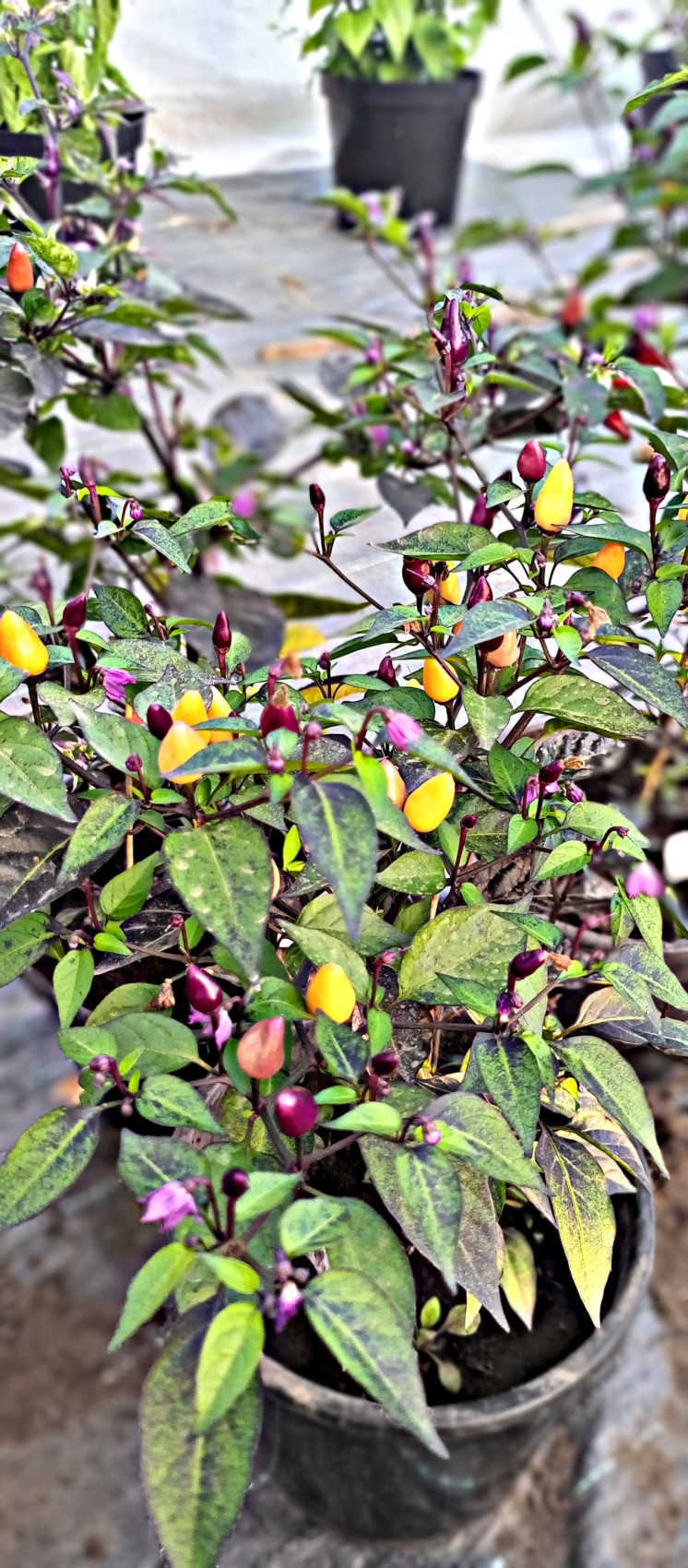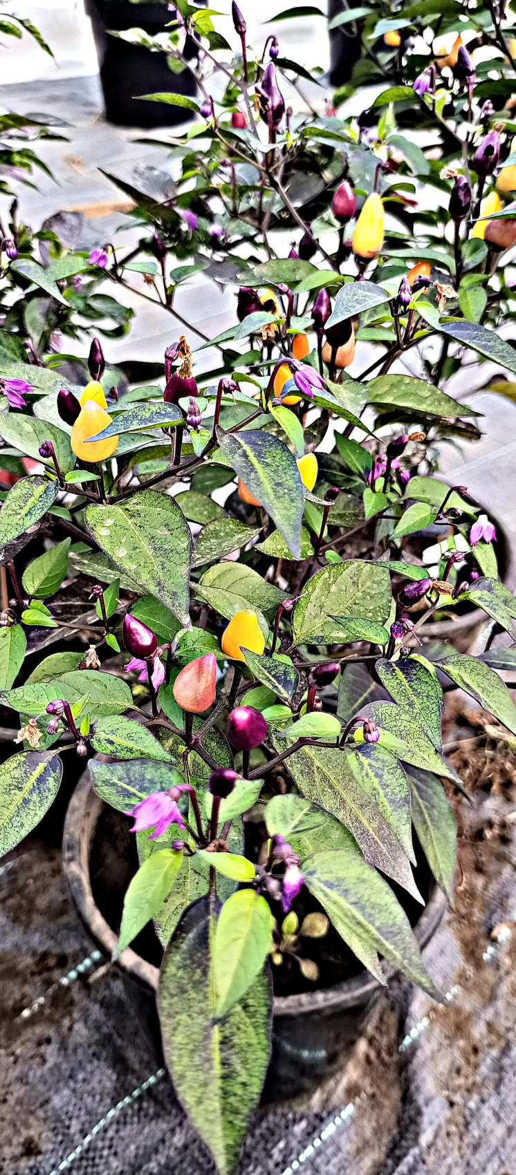 Красивый и яркий сорт острого перца. Куст может достигать 50 см в высоту, слегка раскидистый, отлично растёт в кашпо и ёмкостях от 3 л. Полностью съедобный сорт. Острота до 50 000 по шкале Сковилла. В технической зрелости плоды имеют фиолетовый цвет, в процессе созревания становятся жёлтыми, а при биологической зрелости ярко-красными. Листья имеют тоже интересный цвет, какая-то часть может быть тёмной, другая – светлой. Данный сорт очень интересный и неприхотливый. Для употребления в свежем виде и в кулинарных рецептах.
