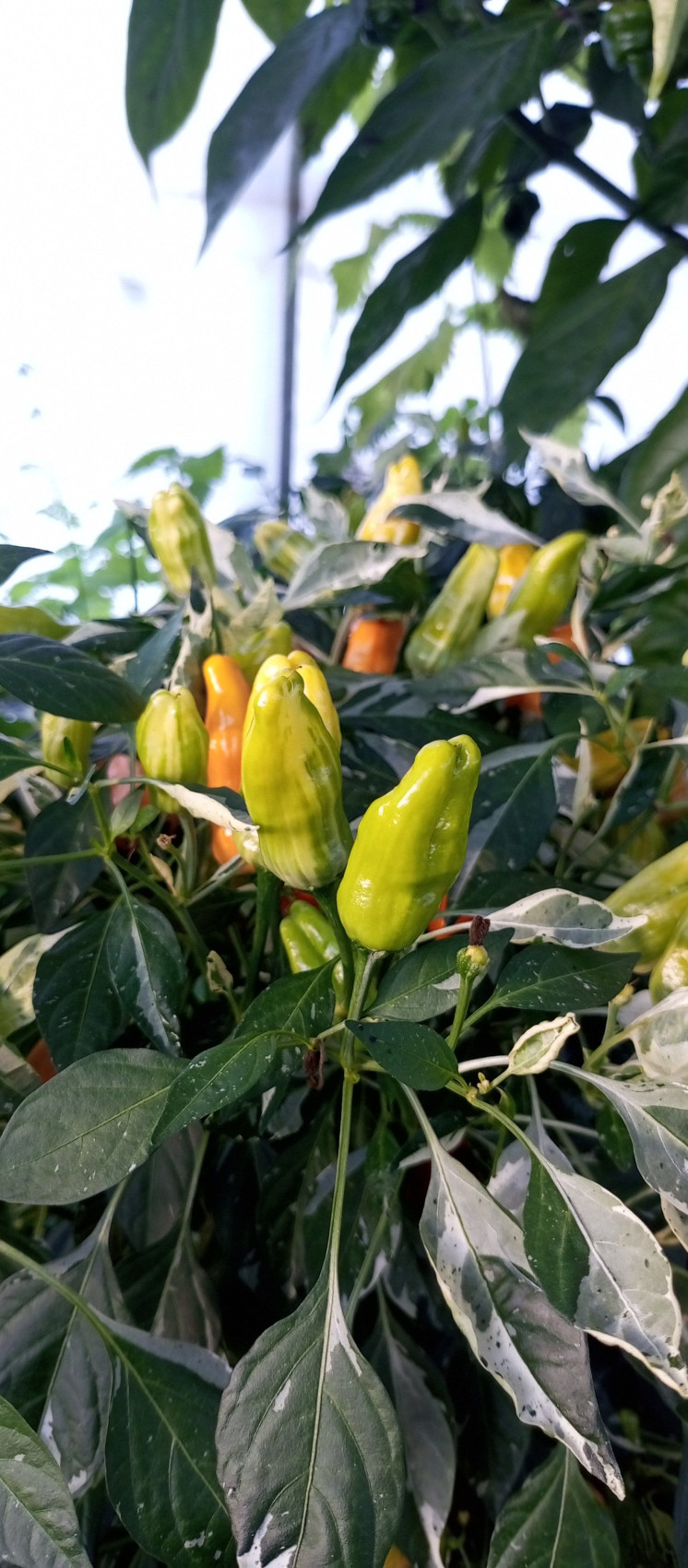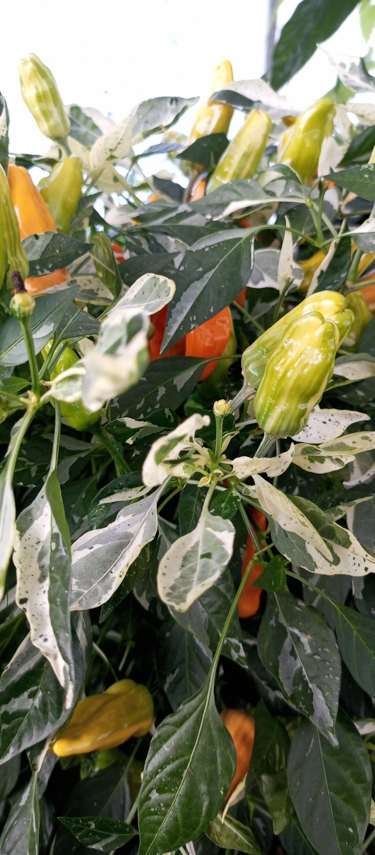 Очень красивый и необычный сорт острого перца. Особенность данного сорта в том, что на листьях присутствует варигатность, перчинки необычной формы, на которых присутствуют бело-зелёные полоски. Срок вегетации средний. Острота до 30 000 по шкале Сковилла. Размер куста 30-40 см. У куста очень аккуратная и пышная форма. Подойдёт для выращивания в ёмкости 3 л. Применение универсальное.