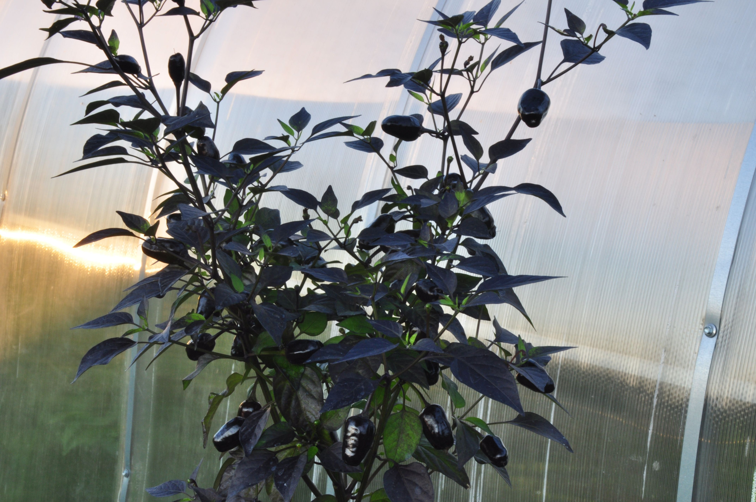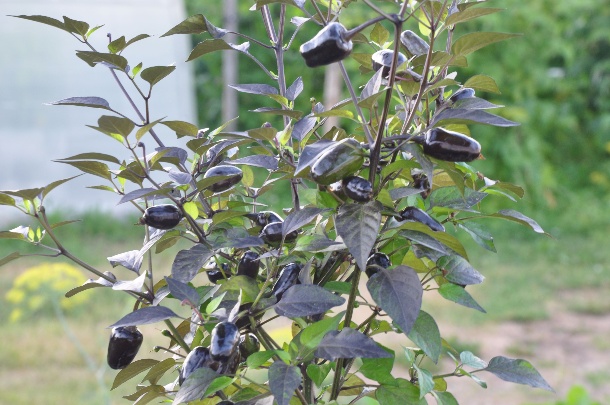 Красивое, компактное урожайное растение, покрытое темно-зелеными листьями с привлекательными фиолетовыми цветами и черными, глянцевыми плодами, похожими на оливки. Острота 30 000–50 000 по шкале Сковилла. При полном созревании плоды становятся темно-красными. Высота куста 40–50 см. Можно выращивать в емкости от 3 л.