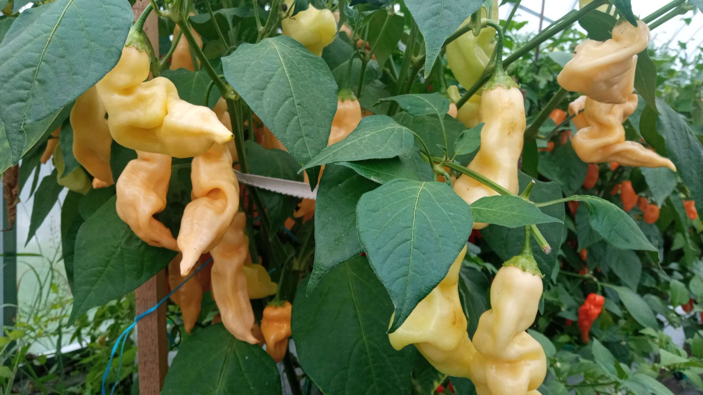 Персиковый сорт Shugar Rush Peach — отличный сорт от Криса Фаулера из Великобритании! Острота до 50 000 по шкале Сковилла. Единственный в своём виде с персиковым цветом стручков. Растения плодовиты, в идеальных условиях выращивания дают до 40 крупных перцев с одного растения. Кусты высотой 1,5 м, сильно ветвятся. Стебли очень кустистые и непривычно тонкие. Стручки большие и продолговатые с морщинистой поверхностью и заострённым концом. Цвет начинается со светло-зелёного или жёлтого, а при созревании становится кремово-персиково-оранжевым. Вкус сладкий, свежий, слегка растительный, с приглушёнными оттенками тропических фруктов. Хорош для употребления в свежем виде, идеальный ингредиент для фруктовой сальсы, консервирования и приготовления блюд.