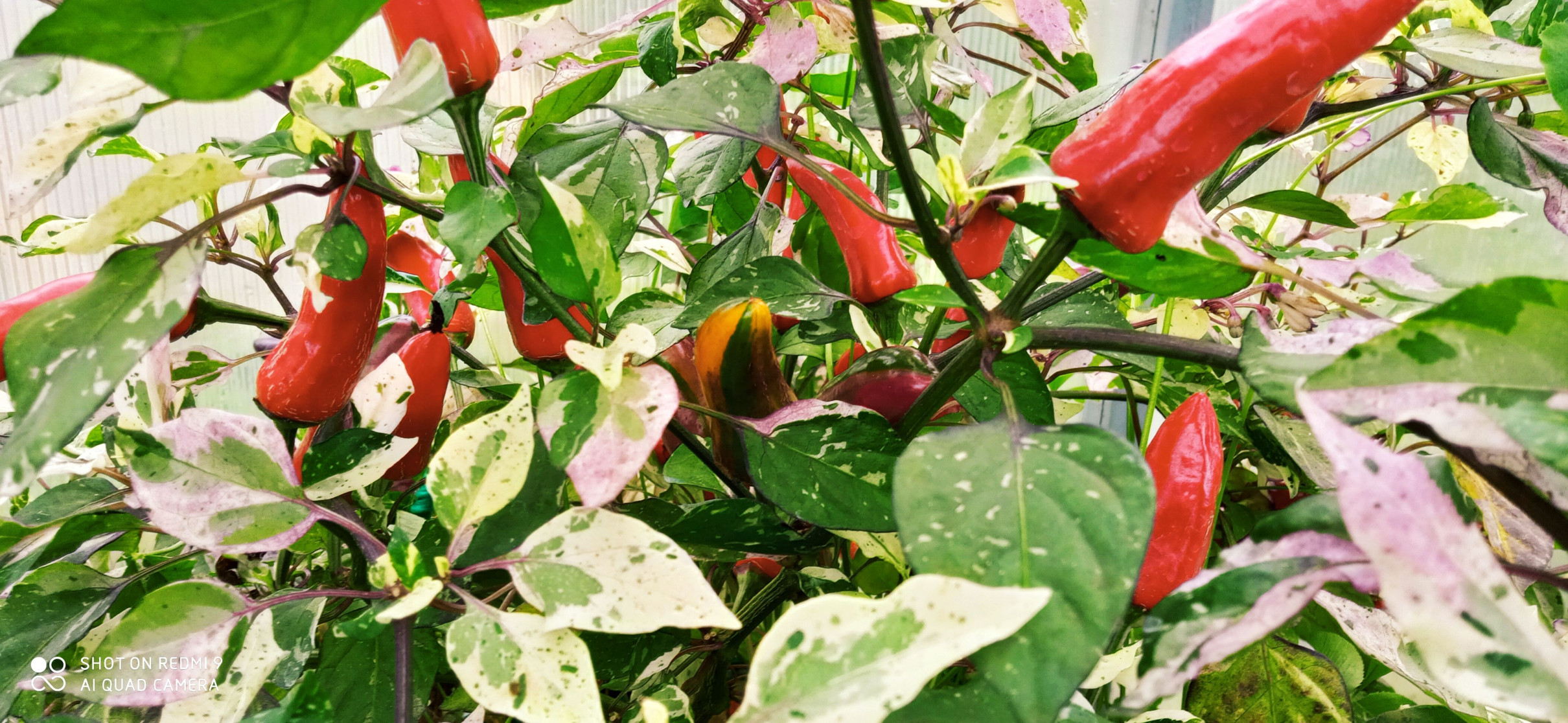 Очень красивый и необычный сорт перца. Острота 5000-15000 по шкале Сковилла. Особенностью данного сорта является его окрас, как листьев, так и плодов. Вкус сладкий с остринкой. Высота куста до 50 см. Можно выращивать в домах в емкости от 3 л. Для употребления в свежем и маринованном виде.