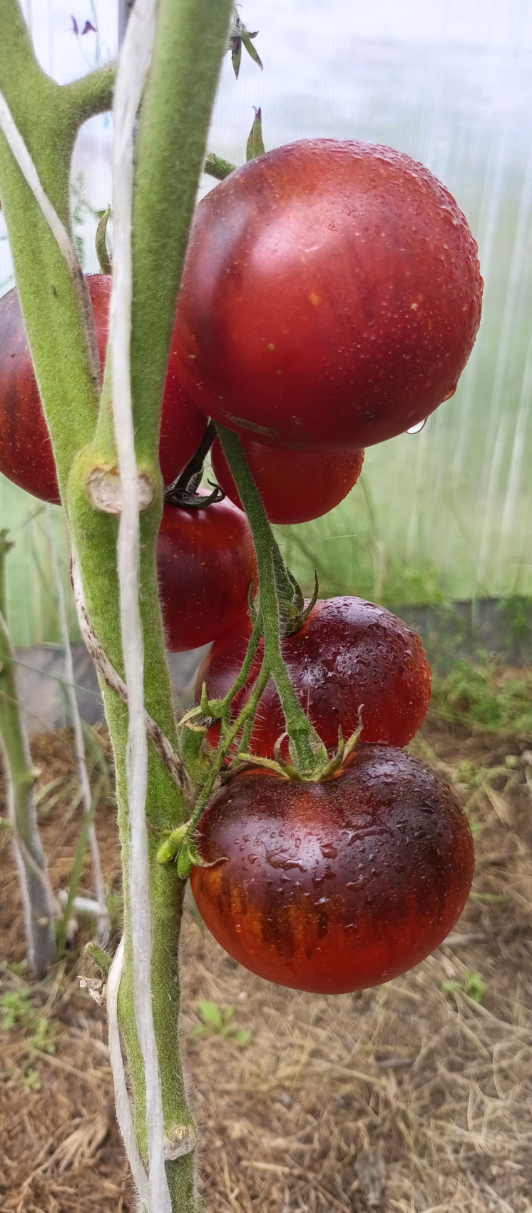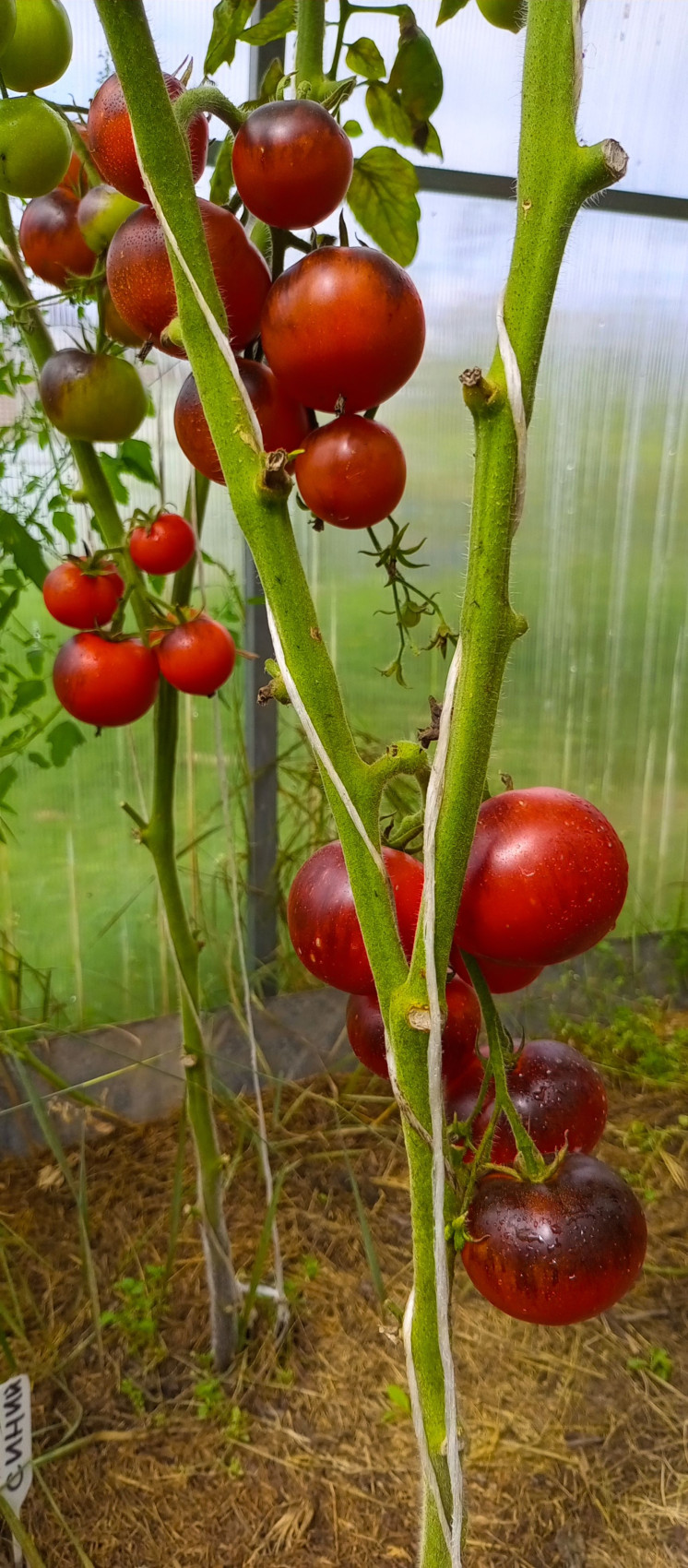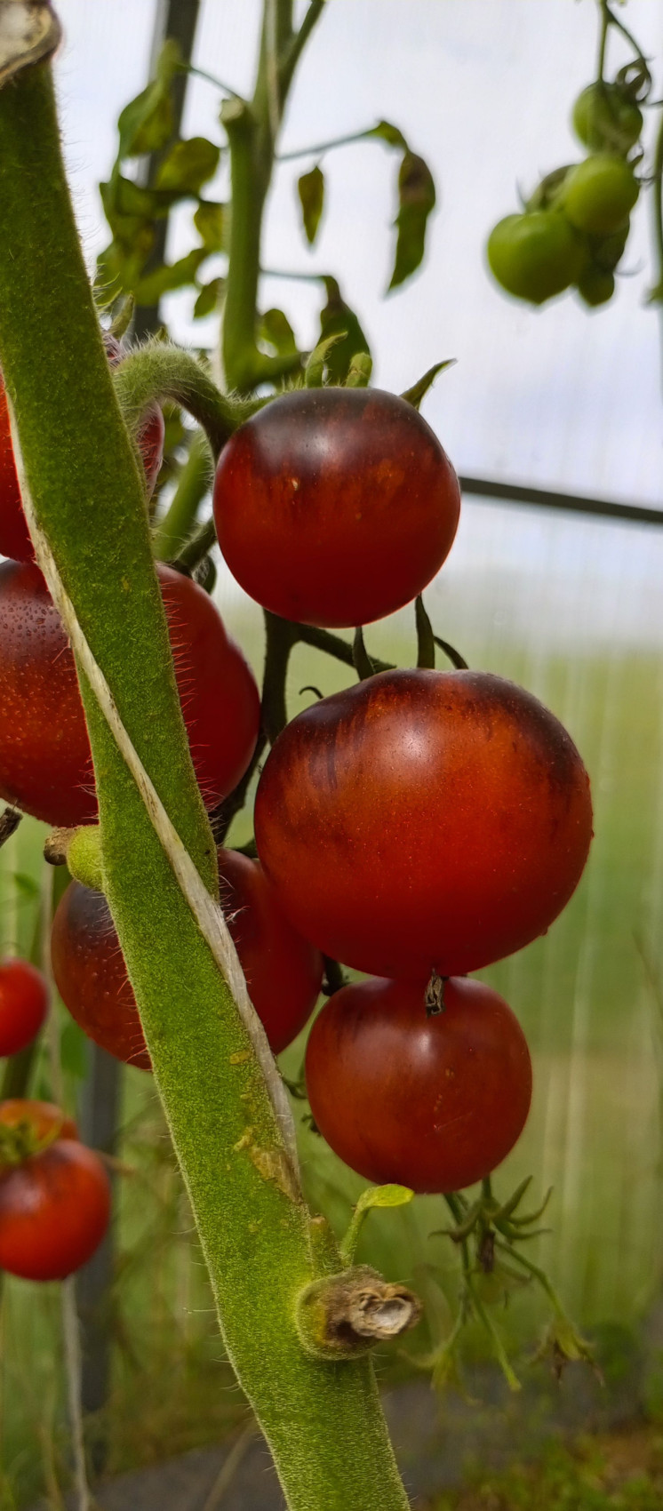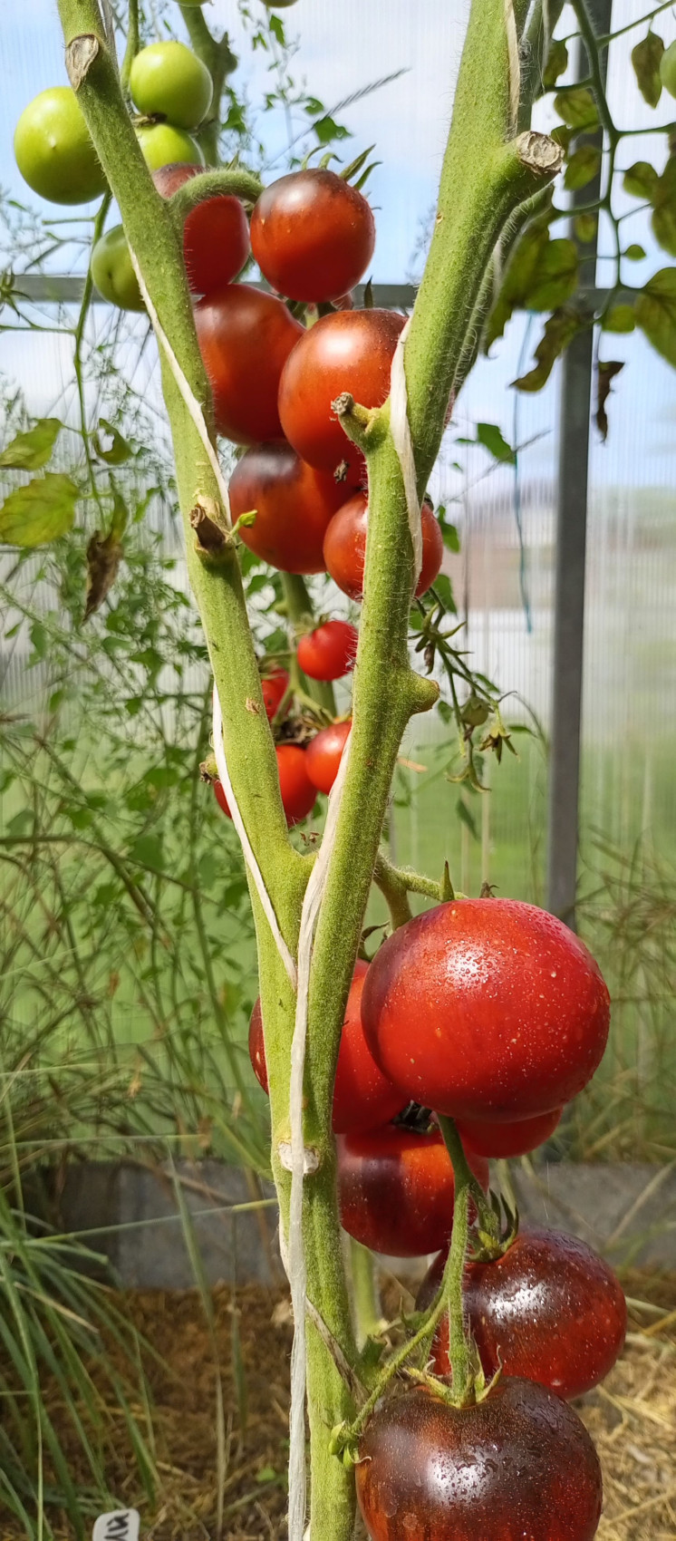 Томат Синий — это редчайший сорт. В стадии технической спелости плоды сине-фиолетовые, а при созревании становятся двухцветными: красно-тёмно-фиолетовыми. Мякоть при этом красно-розовая. Плоды получаются синими благодаря большому проценту антоцианов. Томат считается самым тёмным из всех существующих. Иногда внешне они даже выглядят полностью чёрными. Чем больше солнечного света получают плоды, тем темнее они становятся. Индетерминантный, раннеспелый сорт. Вырастает до 110–160 сантиметров. Формируют его обычно, оставляя один мощный стебель. Отменная устойчивость к различным заболеваниям, особенно грибкового типа. На одной кисти может сформироваться от пяти до десяти плодов. Все плоды круглые, в среднем один помидор может весить до 100 грамм. Этот сорт относится к экзотическим.