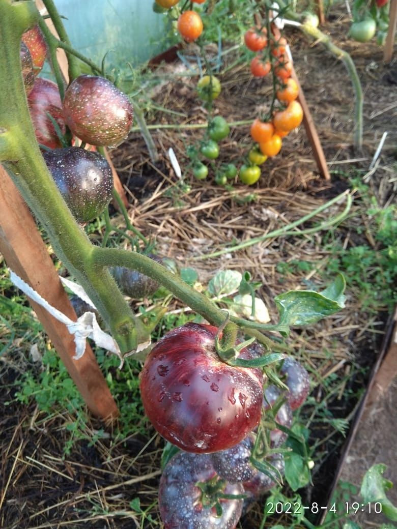 Сорт индетерминантный, среднеспелый, среднеурожайный. Плоды среднего размера, округлые, средней плотности, в стадии зрелости красно-малиновые с золотистыми полосами и антоциановыми плечиками. Вес плода – 50–120 грамм. Мякоть красная, многокамерная, маслянистой структуры, очень вкусная. Кожица на томате тонкая. Эти помидоры имеют универсальное назначение.
