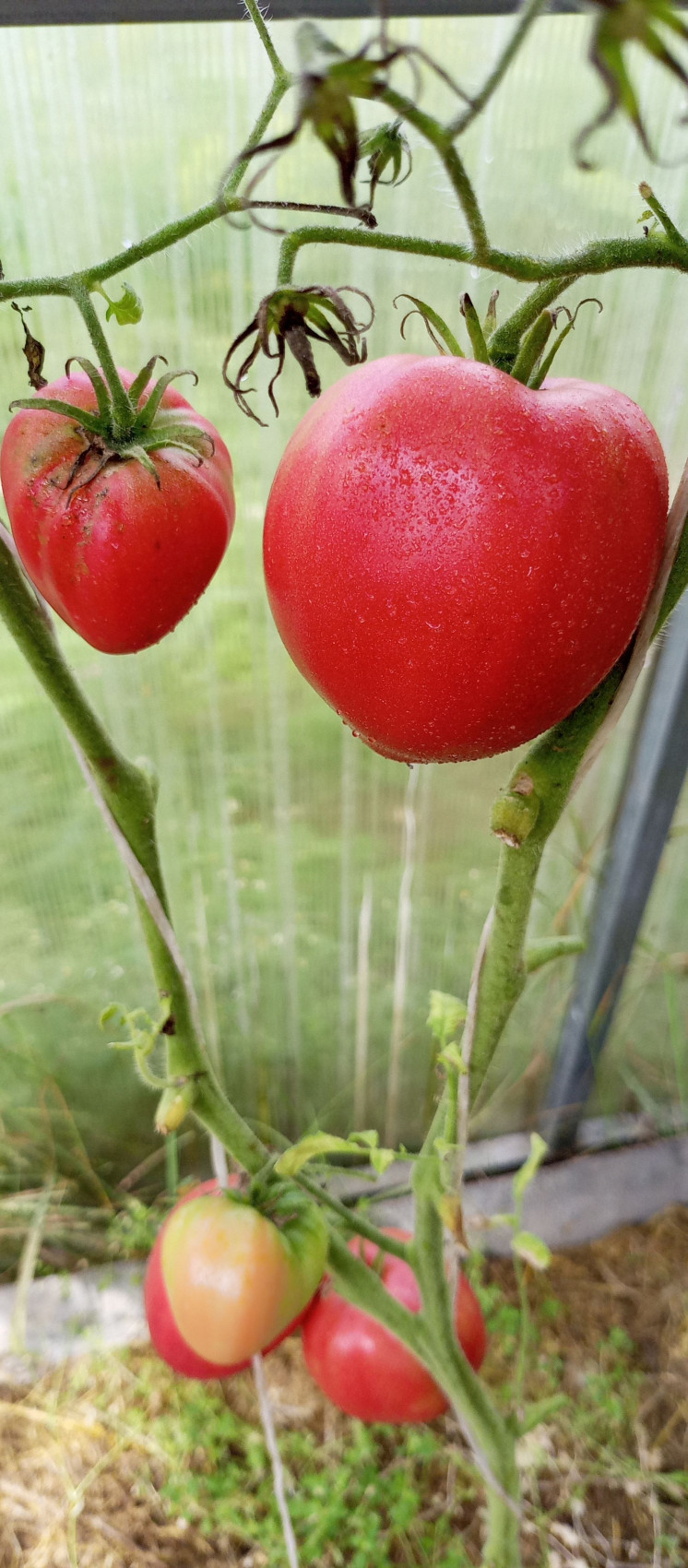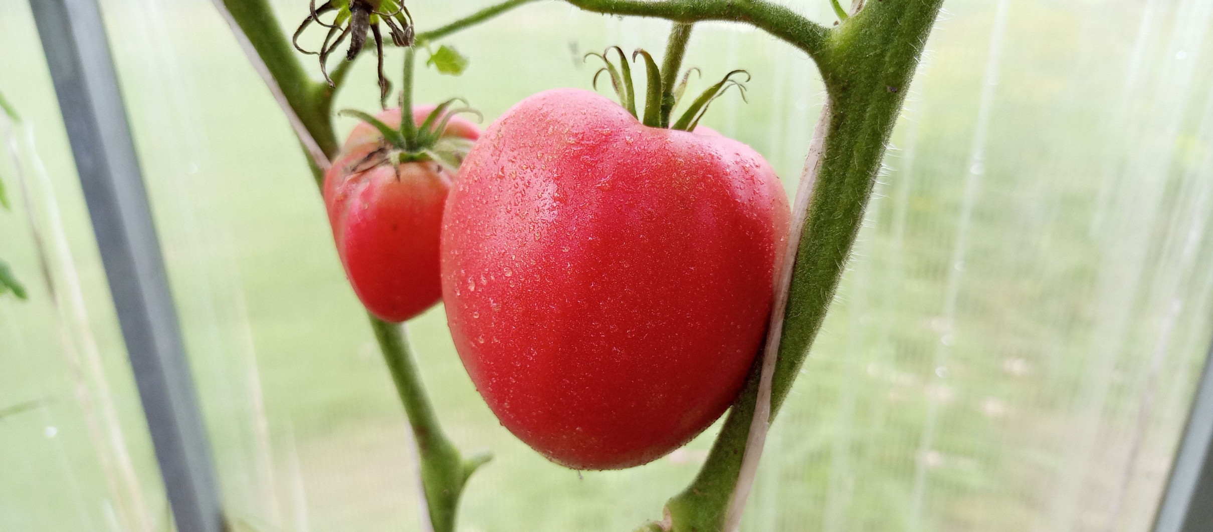 Это высокорослый среднеспелый индетерминантный сорт с мощными крепкими кустами, которым, тем не менее, нужны обязательная подвязка и пасынкование. Высота куста до 2 м. Это кистевой томат, плоды собраны кучками по 4–8 штук. Первая плодовая кисть формируется над 5-м листом, последующие – через каждые 2–3 листочка. Вести лучше в 2 стебля. Плоды роскошные розово-малиновые сердца массой 300–600 гр. Мякоть очень вкусная, что характерно для многих розовоплодных томатов, плотная, сахарная на разломе, с малым количеством семян. Отлично подойдут для свежего употребления и для приготовления томатного сока и соусов.