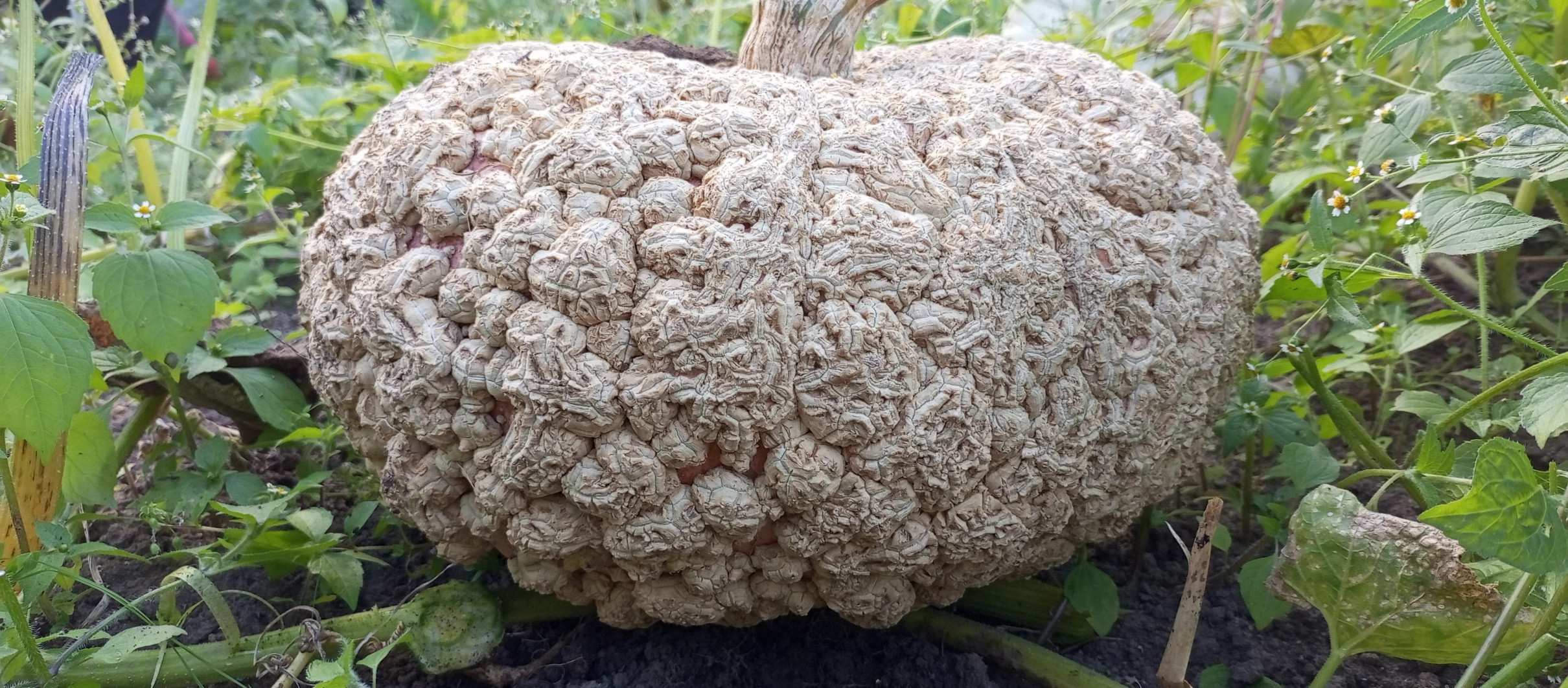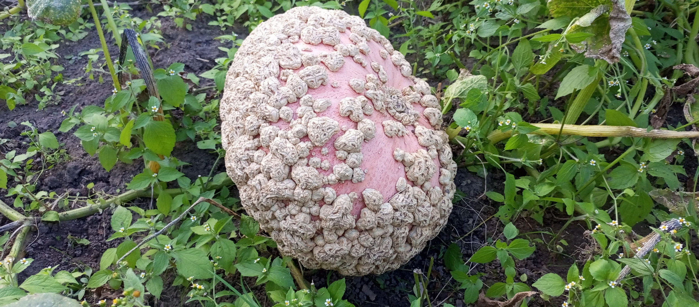 Очень интересный сорт тыквы из Франции. Крупноплодная тыква весом до 15 кг. Поверхность нежно-розового цвета, покрытая наростами, похожими на арахис. Во Франции данный сорт имеет статус самой красивой тыквы, за эти самые наросты её ещё называют арахисовой тыквой. Мякоть оранжевая, хрустящая, сочная, сладкая и ароматная. Срок созревания 95–100 дней. Срок хранения 2–3 месяца. Бородавки появляются в зрелом состоянии. Данный сорт отлично подойдёт для сока, в выпечку и в кашу, при готовке быстро разваривается.